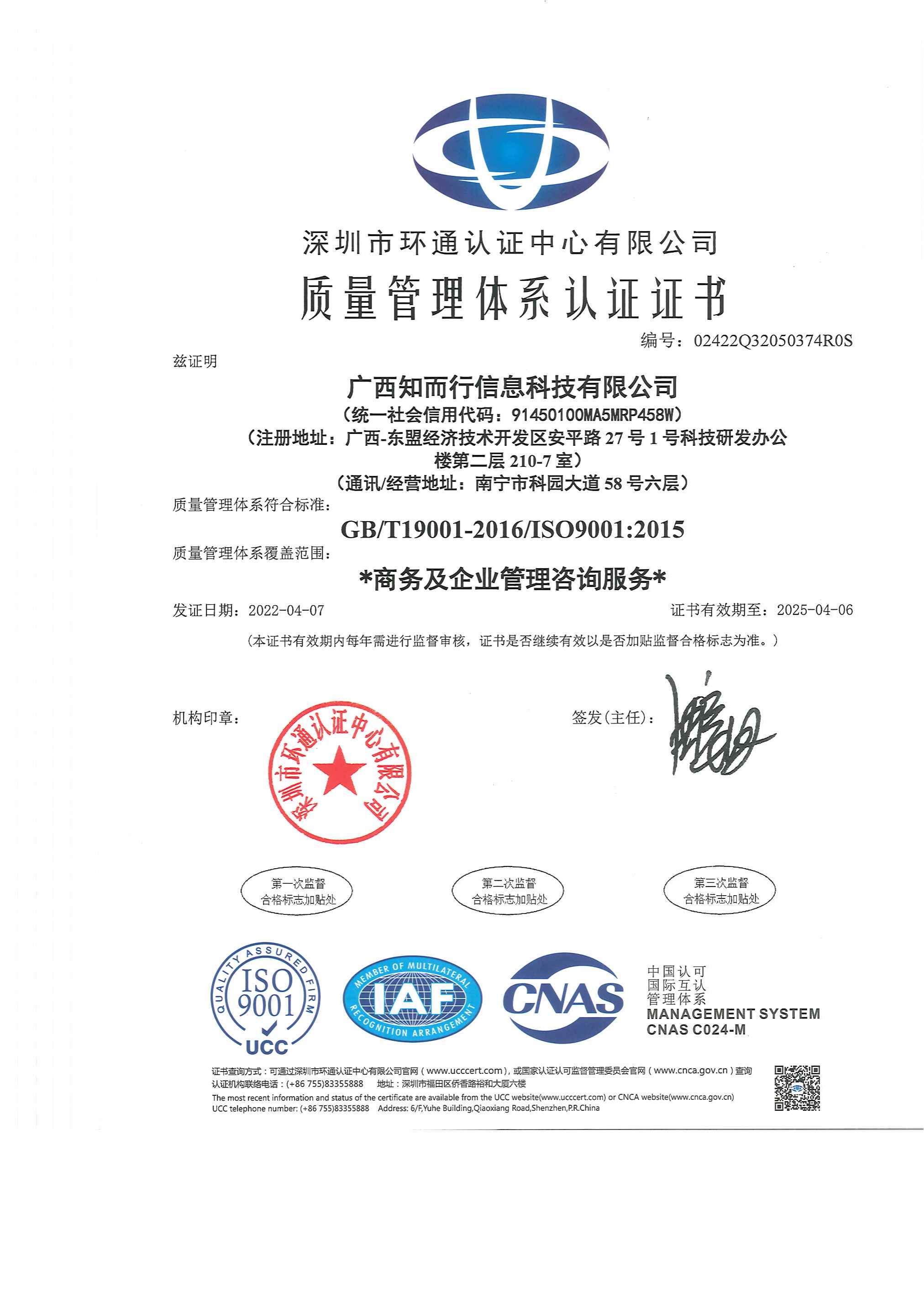 ISO质量管理体系证书